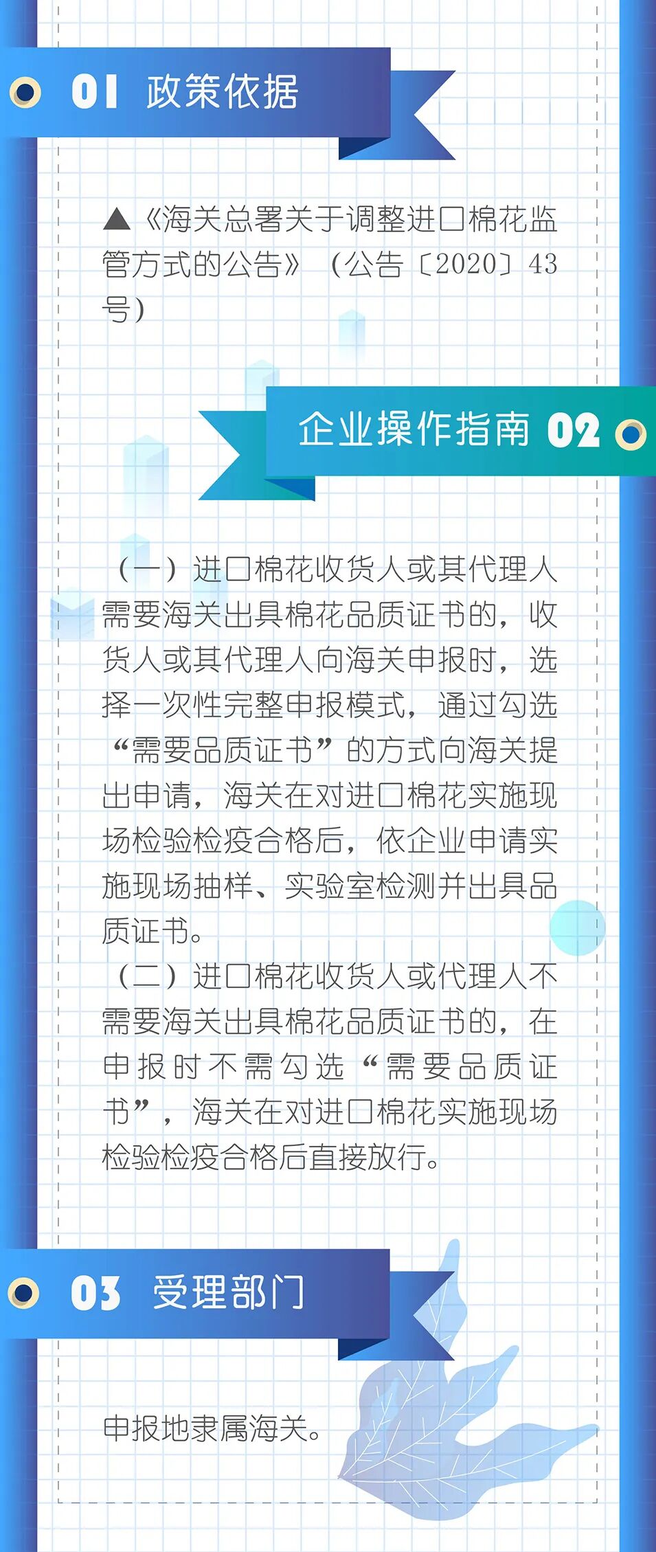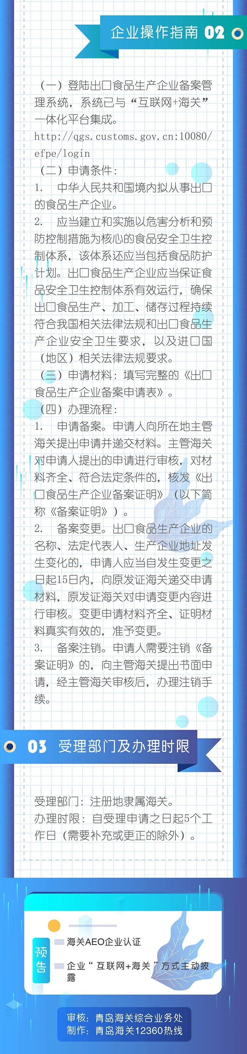 进口棉花依企业申请实施抽样检测、海关企业协调员、出口食品生产企业备案核准