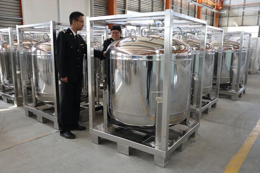 淄博海关关员在危化品生产车间实施监管。图 / 董晓沅